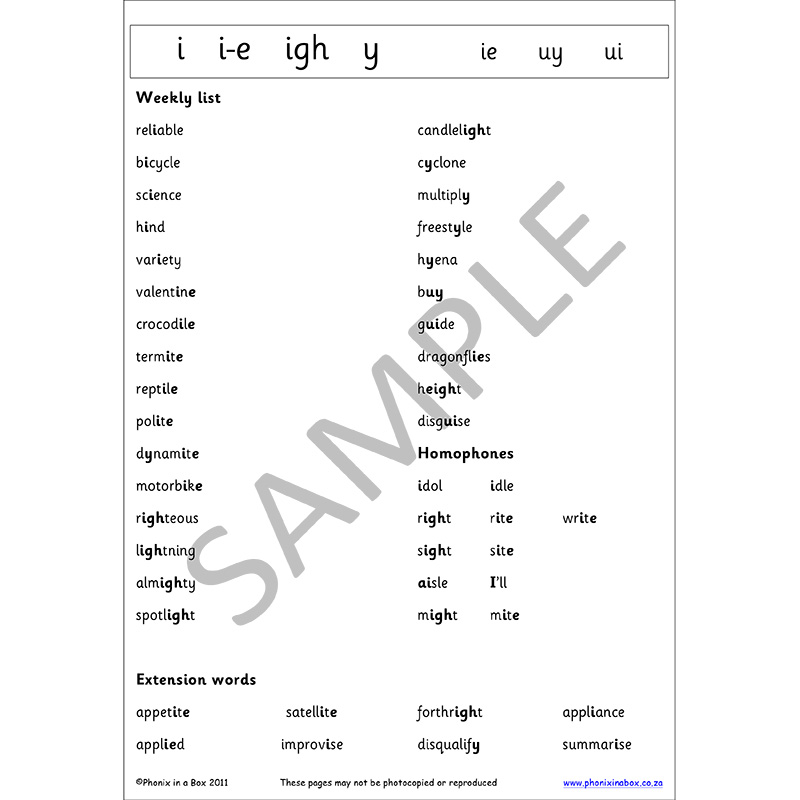 Grade 5 introduces different spelling choices for the vowel and consonant phonemes e.g. f/ff/ph/ and gh; e/ee/ea/ey/y and ei/ie Worksheets focus on homophones, proverbs & similes.