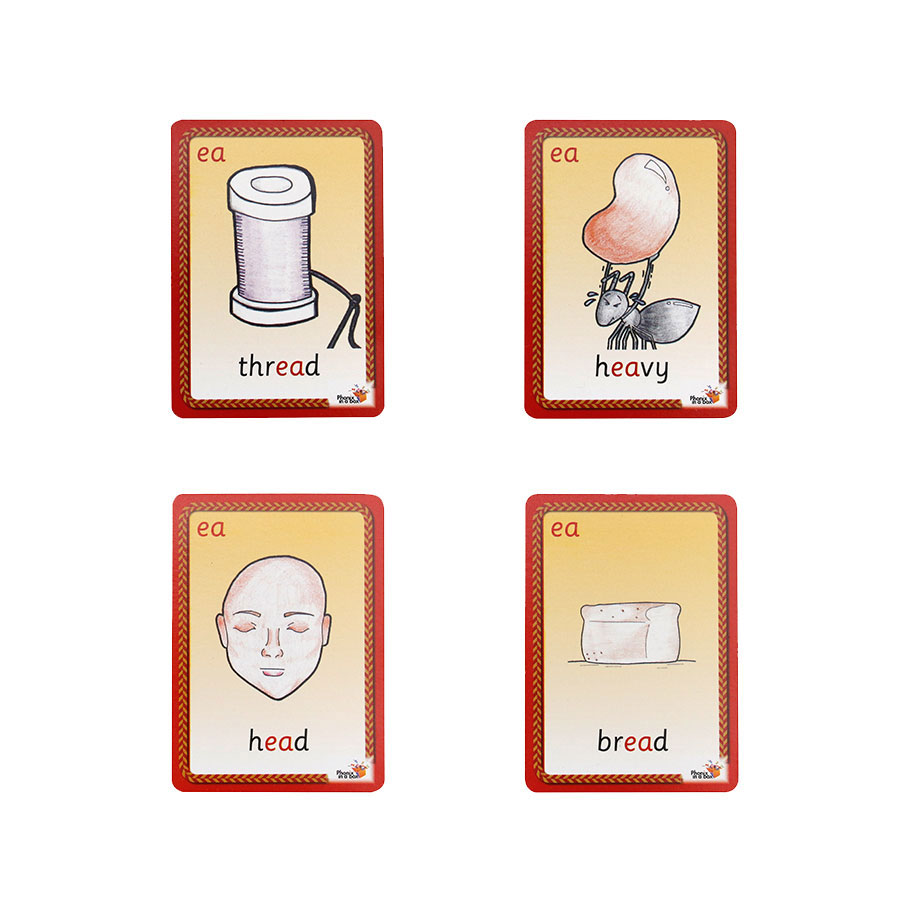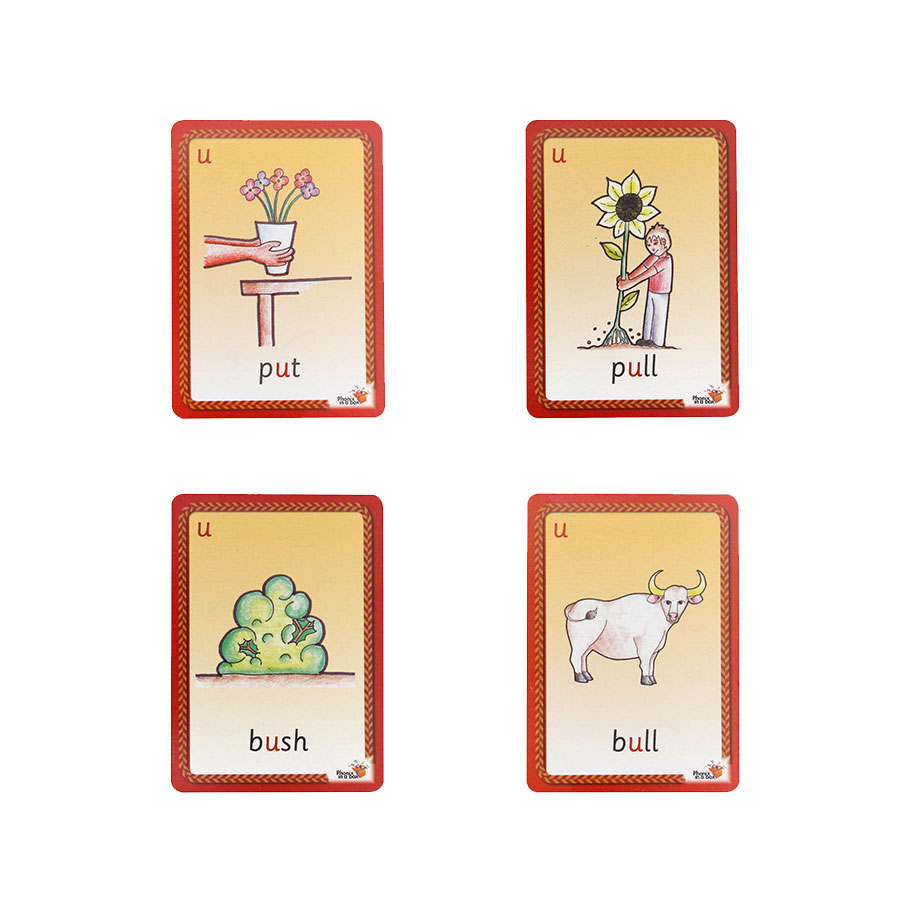 The cards introduce the short vowels often taught in Grade 1. Playing different card games is an excellent way to strengthen your child's ability to link sounds to letter combinations. This will help them decode new words more effectively.
